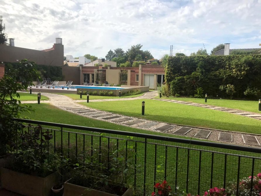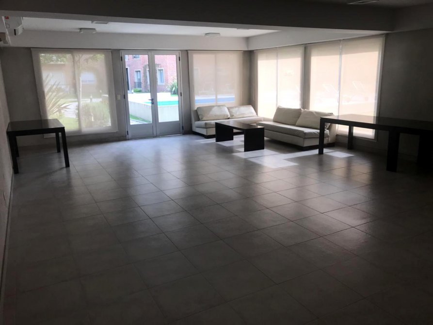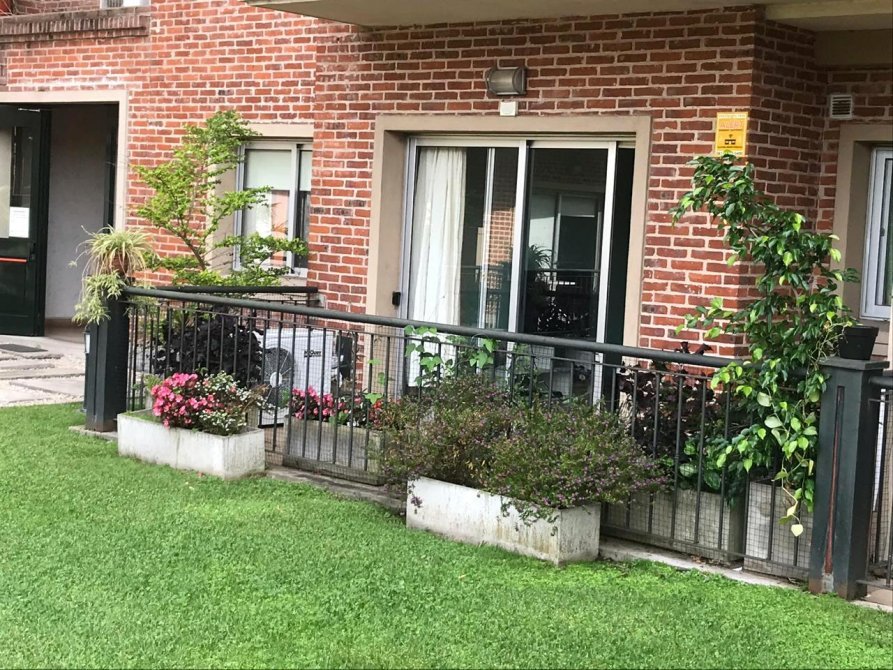 Excelente departamento en Planta Baja. Consta de cocina con muebles sobre y bajo mesada y lavadero. Living con balcón propio con vista al parque y a la pileta. Aire acondicionado. Baño completo. Dormitorio amplio con placard grande y equipo de aire acondicionado. Calefacción por losa radiante. 60 m2 cubiertos aprox. El edificio cuenta con pileta, solarium, gimnasio, sum y gran espacio verde. Seguridad las 24 hs. Inmejorable zona. Ubicado a 3 cuadras de la estación y 2 del centro de Adrogué.