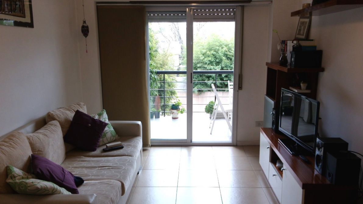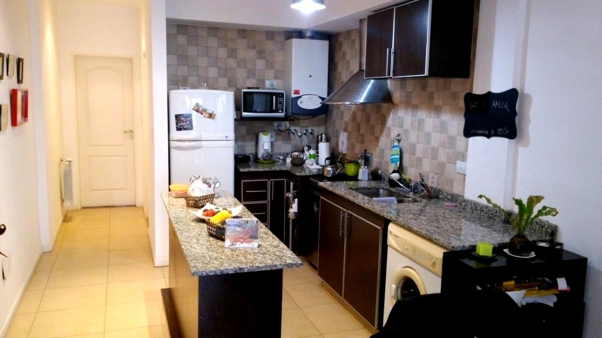 Consta un dormitorio con aire acondicionado y placard embutido. Pequeño balcón. Baño completo con bañera con mampara. Cocina (con extractor) integrada con muebles sobre y bajo mesada. Barra desayunadora. Caldera Aristón con radiadores en todos los ambientes. Comodo living comedor. Balcón. Luminoso.