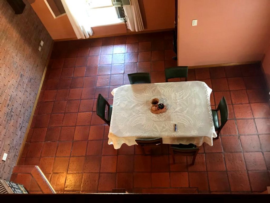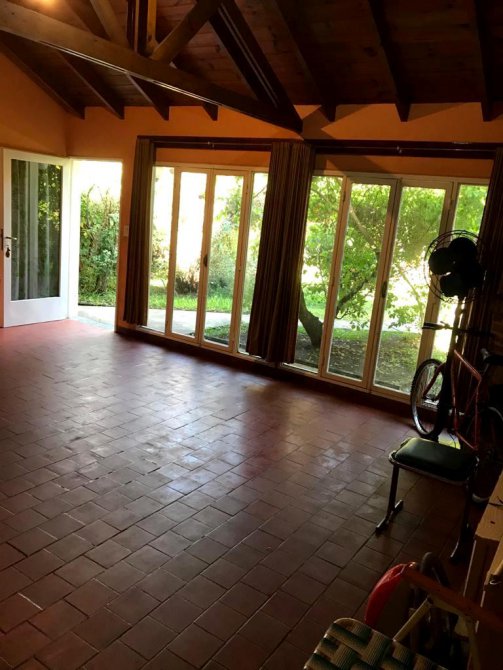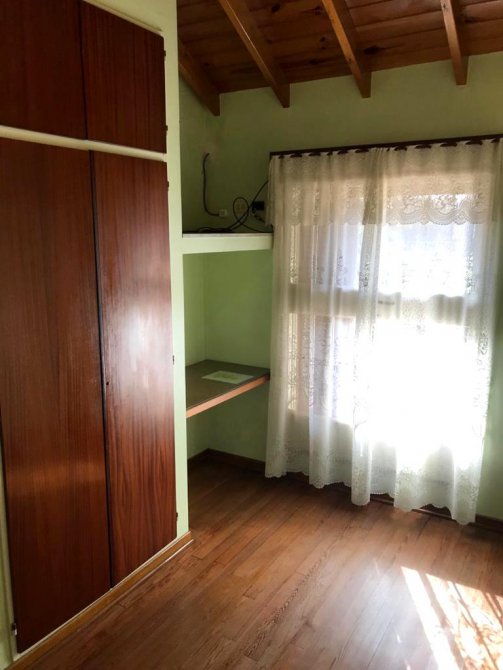 Amplio quincho con mesada, parrilla. Horno a leña o a gas natural, hogar y toilette. Pileta de lavado. Galpón/cuarto de herramientas. Planta alta: Dos dormitorios chicos con placard. Amplio dormitorio principal con placard. Baño completo. Amplia baulera. Sótano o playrrom con piso de cerámica. Despensa.