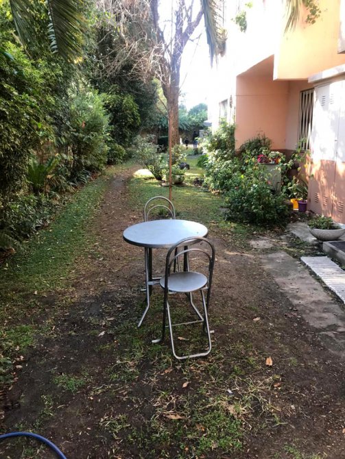 Consta de: Cocina comedor con muebles sobre y bajo mesada. Living con aire acondicionado y puerta ventana con salida al jardín. Baño completo. 2 Dormitorios con placard.